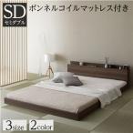 ボンネルコイルマットレス付き セミダブルベッド マットレス付き コンセント宮棚付き 和モダン ローベッド セミダブル ブラウン