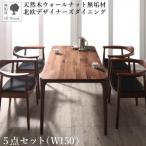 5点セット(テーブル150+チェア4脚) ダイニングセット 木製 ダイニングテーブルセット 北欧デザイナーズ おしゃれ 天然木ウォールナット無垢材 4人掛け 4人用 ウォールナットブラウン