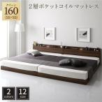 ローベッド クイーン(SS+SS) クイーンベッド マットレス付き フロアベッド クイーンサイズベッド すのこ 2層ポケットコイル 連結