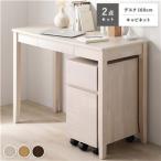 引き出し付き ブラウン スリム 100cm幅+キャビネット ワークテーブルセット ナチュラル 天然木 茶 ホワイト 木製 白 ワークデスクセット デスクセット