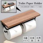 片手で切れる トイレットペーパーホルダー 2連式 天板付き 木