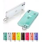 キラキラのグリッター入りのクリアケース。指を通すことで落下防止になるベルトは、スマホ本体の横置きスタンドの機能も持ち合わせています。
