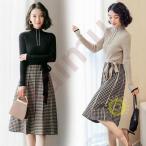 連携キーワード:ニットワンピース レディース 40代 秋冬 長袖ワンピース 黒セーター ロング丈 チェック柄 プリーツスカート リボン ひざ丈 ニットインナー オシャレ 大人 上品