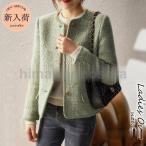 ノーカラージャケット レディース 春秋 40代ツイードコート