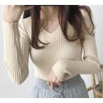 シンプルデザインのリブ編みVネックニット!一枚着でもインナーとしても活用しやすい1着!1枚もっておくと便利なアイテム!