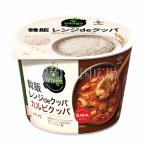 [原材料] ごはん[うるち米(国産)/pH調整剤]、スープ[牛骨エキス、ビーフオイル、ビーフエキス、砂糖、にんにく、食塩、植物油脂、牛肉だしの素、コチュジャン、酵母エキス、唐辛子粉、こしょう/調味料(アミノ酸等)、パプリカ色素、酸化防止剤(V.E)、増粘剤(キサンタンガム)、香料、酸味料、香辛料抽出物]、具材[肉チップ、鶏卵加工品/増粘剤(キサンタンガム)、調味料(アミノ酸等)、リン酸塩(Na)、粉末セルロース、膨張剤、着色料、酸化防止剤、香料]、(一部に小麦・卵・乳成分・牛肉・ごま・大豆・鶏肉・豚肉を含む)