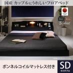 ローベッド セミダブル マットレス付き ボンネルコイル 国産 コンセント・照明付 カップルベッド セミダブルベッド ローベッド ブラック 黒 ブラウン