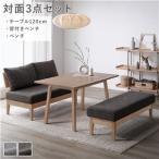 グレー ダイニングセット 天然木 背付きベンチ+ベンチ 120cm 4人掛け ダークブラウン 木製 4人用 対面3点セット 食卓テーブルセット ダイニングテーブルセット