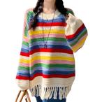 カラフルなボーダー配色とフリンジデザインが合わさった、普段コーデをパッと明るくしてくれるプルオーバーが登場しました。