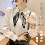 リボンボウタイブラウス レディース シャツブラウス ボウタイ シフォン ブラウス シャツ オフィス フォーマル 上品 きれいめ 長袖 トップス スカーフカラー 通勤 仕事 お呼ばれ 秋 春 冬 夏 M L XL 2XL 新生活