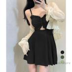 インナーパンツ付き水着レディース 盛れる水着体型カバー おしゃれ韓国風水着 高校生修学旅行スイムウェア ハイウエスト水着