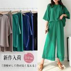 上下セット レディース セットアップ トップス 七分袖 Tシャツ ボトムス 九分丈パンツ 夏 軽量 快適 薄手 おしゃれ 大人 ゆったり カジュアル 涼しい 着痩せ 体型カバー レディースファッション