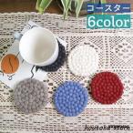 小さなフェルトのボールをつなぎ合わせたコースター。