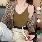 きれいめ ノースリーブ ニットトップス 重ね着 サマーニット おしゃれ レイヤードコーデ 春秋夏 インナーニット 韓国風