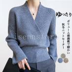 クロスしたデザイン 秋冬新作 ニット ハイウエスト カシュクール ロングスリーブ 長袖 プルオーバー レイヤード ゆったり リブニット Vネック ニット セーター 韓国ファッション きれいめ
