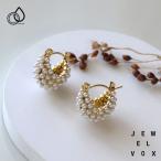 ぷっくりとしたドロップフォルムに小粒のパールを敷き詰めた上品な可愛らしさが映えるデザイン。