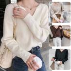 長袖ニットセーター ラウンドヘム vネック リブ編み レディース ニット 長袖 セーター トップス 長袖ニット プルオーバー 袖ボタン トップス ブラウス レディース スタンドカラー 秋冬 プルオーバー レディース