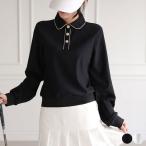 韓国ゴルフウェア 配色ライン 丸襟 長袖 ポロシャツ