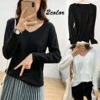 ニット 無地/リブニット 長袖/リブニット トップス/オフィス