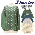 ドット柄のミニ裏毛トレーナーに袖部分をレースで切り替えた特徴的な