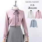 ブラウス レディース トップス シャツ シャツブラウス ボウタイシャツ ボウタイブラウス 立ち襟 リボン 配色 長袖 大きいサイズ ゆったり 春 夏 秋 冬 ボウタイ