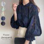 爆買 品のよさが際立つ花柄シフォンジャガードシャツブラウス