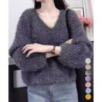 レディース ふわふわ モヘアニットプルオーバー 大人可愛いシャギーセーター 韓国風きらきらトップス キレイめニット 無地