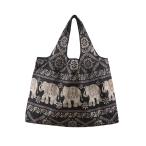 オリエンタル柄 アジアン タイ風 インド ボタニカル柄 異国風 折り畳み バッグ スーパーマーケット ハンドバッグ ナイロンバッグ 柄物 黒 ブラック