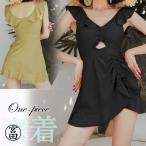 胸元ギャザー Vネック フリル お洒落 オールインワン レディース プール リゾート サマー 海 可愛い