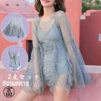 ラメ入りシアートップスとキャミワンピ仕様のレディース新作水着2点セット