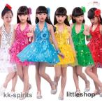 キッズ ダンス 衣装 スパンコール ダンスドレス 子供 ワンピース ジャズダンス 衣装 HIPHOP ガールズ ダンスワンピ チュールスカート 100 110 120 130 140 150 160 6カラー 発表会 応援団 3枚 イベント