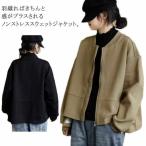 ノーカラースウェットジャケット ゆったり レディース 春 秋 ア