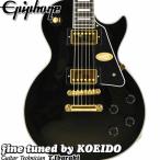 Gibson Custom Shop とのコラボレーションにより、Les Paul Customをリリース!ワンピースマホガニー・ネック、50 年代のラウンディッド C プロファイル、エボニー指板、マザーオブパール・ブロックインレイ等、「タキシード」と称されるLes Paul Custom の気品ある仕様の数々を採用しています。ギブソンスタイルのオープンブック・ヘッドストックの上面には、マザーオブパール・スプリットダイヤモンド・インレイとエピフォン・ロゴのインレイがあしらわれ、Grover Locking Rotomaticチューナーを含むゴールドハードウェア等、目を引く仕様に溢れています。ソリッドマホガニー・ボディにメイプル・トップが貼られ、トーンに心地よい歯切れの良さが感じられます。ピックアップには、Gibson USA 490R および498T を搭載し、洗練されたサウンド。CTSポテンショメーター、Switchcraftアウトプット・ジャック、ピックアップ・セレクター・スイッチ、およびMalloryコンデンサー等、ハンドワイヤリングにて結線されています。ヘッドストック裏にはInspired by Gibson Custom のダブルダイヤモンド・ロゴが刻まれています。専用ブラックハードケースが付属。当店で調整し発送致します