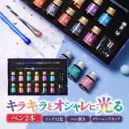 ・ラメ入りのキラキラインク12色、太さの異なる2本のガラスペンのセットで、デザイン性も高く、見ているだけでも心が満たされます。