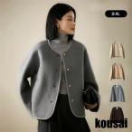 ジャケット レディース ノーカラー ツイード ジャケット アウター ブルゾン ライトアウター 丸首 クルーネック 長袖 長そで 羽織り 羽織 金ボタン ゆったり 秋