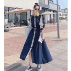 ワンピース シャツワンピース 長袖 ワンピース レディース ロング 切り替えワンピース Aライン コート ウエストリボン ウエストマーク ロングコート 大きいサイズ 3L 韓国 ファッション シンプル カジュアル おしゃれ 大人可愛い 春服 秋服 春物 秋物 20代 30代 40代