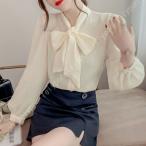 キーワード:シフォンブラウス レディース トップス ふんわり シャツ 通勤 長袖 春夏 OL オフィス フォーマル ブラウス 無地 スキッパー ノーカラー