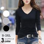 【商品名】 tシャツ レディース 長袖 vネック ロンt 七分袖 カットソー コットン 綿 トップス インナー インナーシャツ 防寒 シンプル 無地 大きいサイズ タイト カジュアル きれいめ おしゃれ 黒 白 グレー オールシーズン