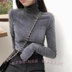 ベロア 長袖 Tシャツ ハイネック タートルネック トップス レデ