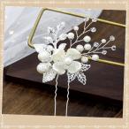 白い花びら土大小のパールとビーズを丁寧に繋げたかわいいかんざしです♪