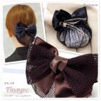 お団子が簡単にできる、シニョンカバー付きのリボンバレッタ。
