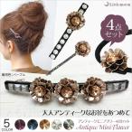 【ヘアゴム】アンティーク風の花びらが重なり合い、一粒のビジューが輝く。