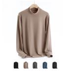 メンズ秋服 冬服 トップス ハイネック 長袖 無地 着こなし シンプル リブカットソー Tシャツ 綿100% ゆったり 裏起毛 ミドルネック 暖かい もちもち フィット タイト