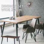 オーク無垢材の200cm幅テーブル、170cmベンチとヌバックのような質感のチェア3脚のダイニング5点セット。