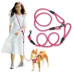 ・?1本6役の多機能リード1.5mのリードが2本セットになっており、用途に合わせて自由な使い方ができるのが魅力です。1本は自身の肩にかけて、もう1本はワンちゃんに繋げる定番ショルダースタイルの他、通常リード1.5m・ロングリード3m・2頭引き・ポールへの一時的な係留・車内でのシートベルトとしてもお使いいただけ、汎用性が高い多機能となっています。