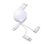 ・2つの変換アダプタ付きで、ライトニングケーブル、USB2.0 Type-Cケーブル、microUSBケーブルとして使用できる、巻き取り式USBケーブルです。