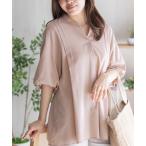半袖 5分袖 チュニック ブラウス バルーン袖 ふんわり ぽわん タック リボン 白 黒 きれいめ スキッパー Vネック カジュアルシャツ プルオーバー HusHusH(ハッシュアッシュ) P42-82302