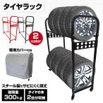 タイヤラック 二段式 8本 タイヤ収納 縦置き タイヤスタンド キャスター付 ロック機能 カバー付 耐荷重300kg