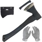 斧全長:39cm、刃渡り:10.5cm、柄長:32cm、斧ヘッドの重さ:約600g、全体重量:約850g 材質:鋼+木+PP+TPR 専用刃保護用ゴムカバーと斧ヘッド用PU保護カバーと耐切創5級手袋付きです。