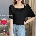 カシュクール ニットトップス バックリボン きれいめ ニットソー 半袖 ショート丈
